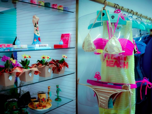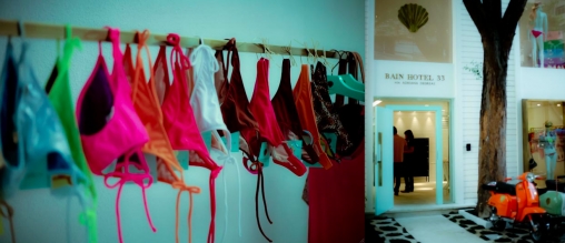 Batizada de Bain Hotel 33, o local tem um conceito moderno, com a cara do verão. Entre biquínis, peças de decoração e roupas, a loja conquistou fãs na abertura, que aconteceu nessa segunda-feira (8). Os biquínis foram assinados por Adriana, que apostou em uma pegada mais “garota de praia”. Chamaram a atenção das convidadas os bíquinis fluorescentes, que são vendidos separadamente, só a parte de baixo, dourado e prateado, para quem quiser fazer topless. Ah, e claro, tem também o modelito fio dental.