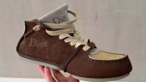 A Dior apresenta o “Roadie”, primeiro tênis criado pelo diretor criativo Jonathan Anderson para a maison. Inspirado nos calçados de direção vintage, o modelo traz design ousado: sem costura, cano alto, cadarços grossos e a assinatura Dior bordada na lateral, destacando-se entre os sneakers tradicionais da marca.