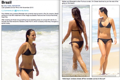 | Jordana Brewster a atriz do filme Velozes e Furiosos 5, nas areias cariocas | ||