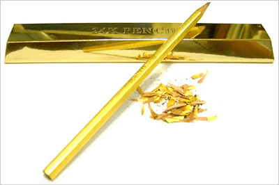 Se luxo é a sua praia, não economize nem nos supérfluos. Este lápis tem a superfície coberta por uma camada feita 99% de puro ouro 24K. Cada unidade ainda vem embalada em uma caixa que se asssemelha a uma barra de ouro.