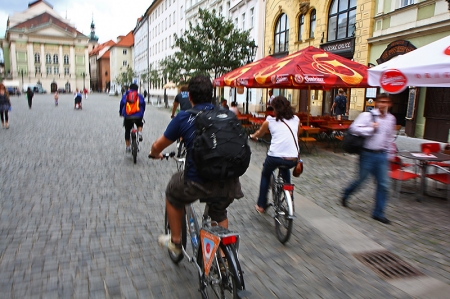 “São 10 horas da manhã, enquanto um casal de velhinhos czechos toma seu café da manhã – já regado a cerveja. Nós, na calçada ao lado, encontramos com o guia para um tour de 3 horas de bicicleta, pela principal cidade da República Czecha, Praga.”