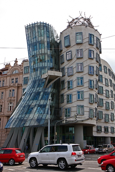 “Descendo em direção à parte nova, ou Nové Mesto, vemos o famoso Edifício Dançante, teoricamente inspirado em Ginger Rogers e Fred Astaire. Apesar de ter sido construído somente em 1997, se encaixa perfeitamente na arquitetura da cidade.”