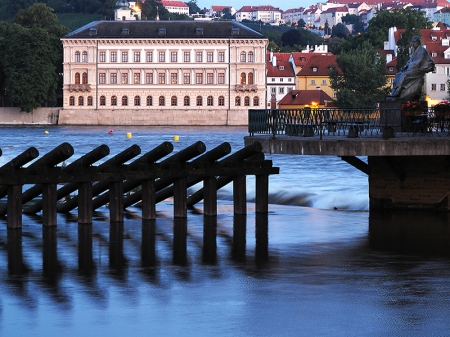 “Cruzamos o Rio Vltava em direção a Smíchov. Ali ainda tem as marcas da última enchente que assolou Praga, em agosto de 2002. Nesta parte da cidade estão algumas das obras mais modernas de Praga, como um museu dedicado ao escritor e filósofo Franz Kafka.”
